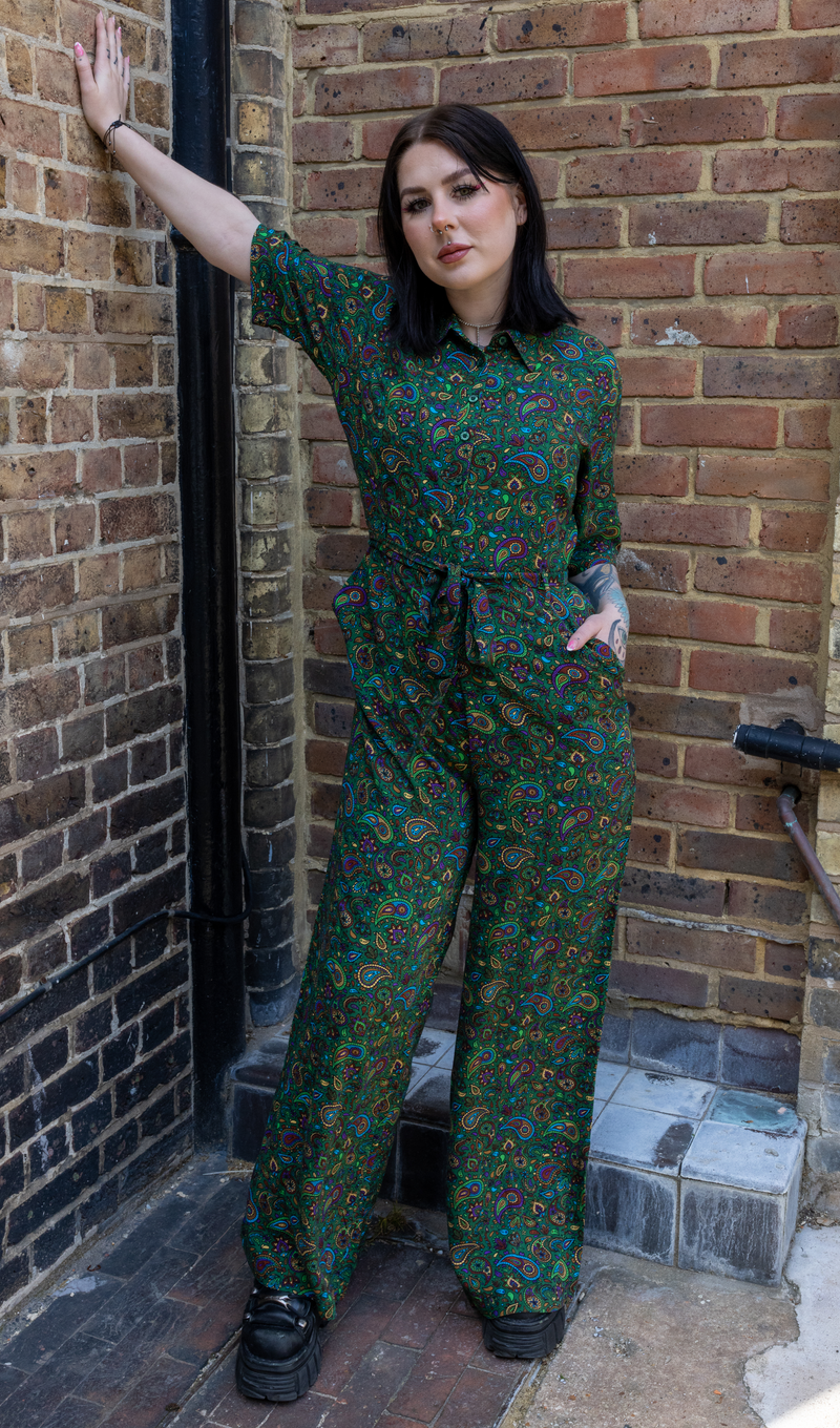 Forest Green Paisley Jumpsuit - Run & Fly