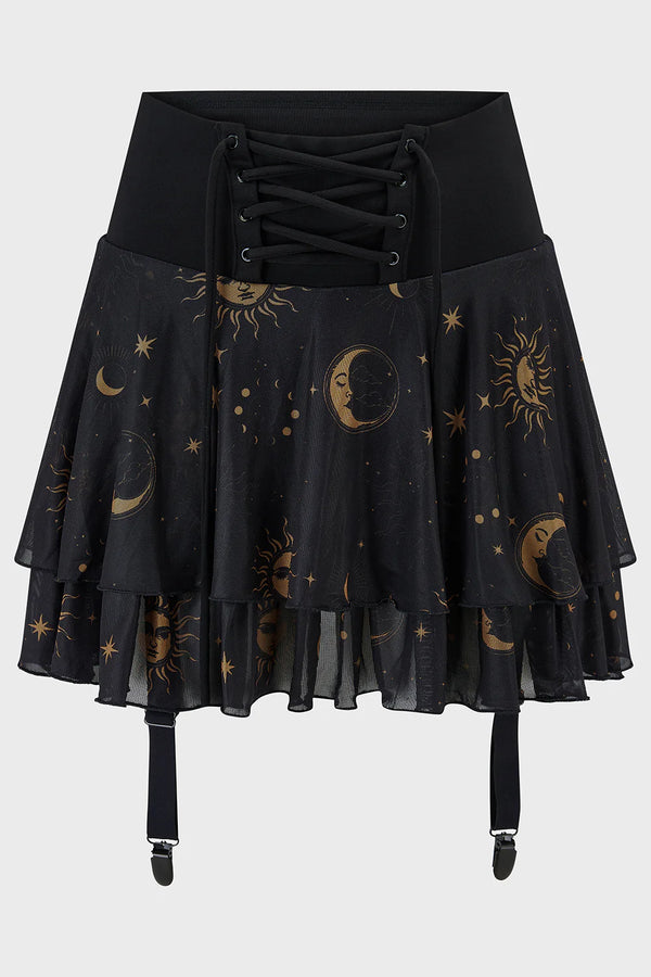- Soft-touch mesh fabric with a comfortable feel.- Built-in shorts for extra comfort.- Mini length for a playful, flattering look.- All-over celestial print.- Adjustable waist ties for a customizable fit.-...