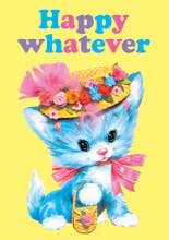 Nothing like a cute vintage picture of a cat to wish someone an apathetic birthday greeting.. A birthday card with a kitsch illustration of of a blue kitten with a...