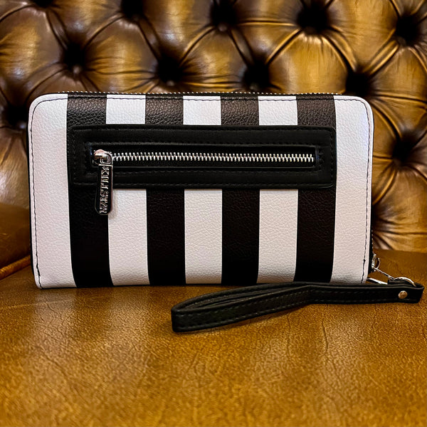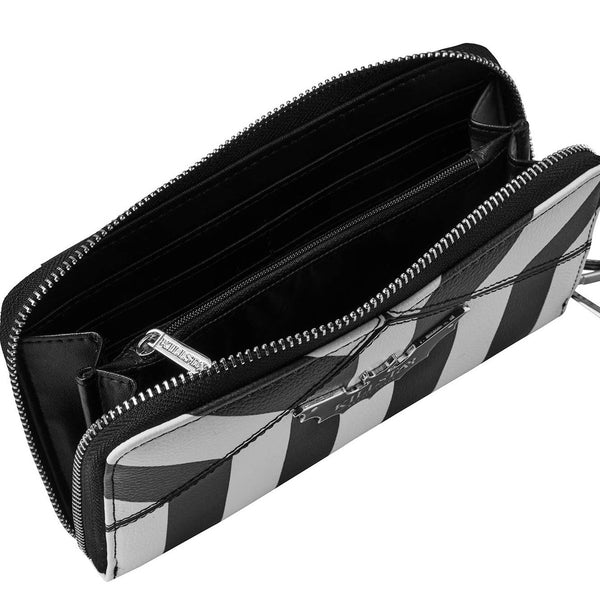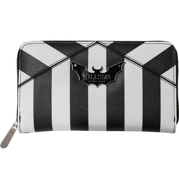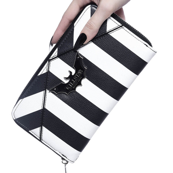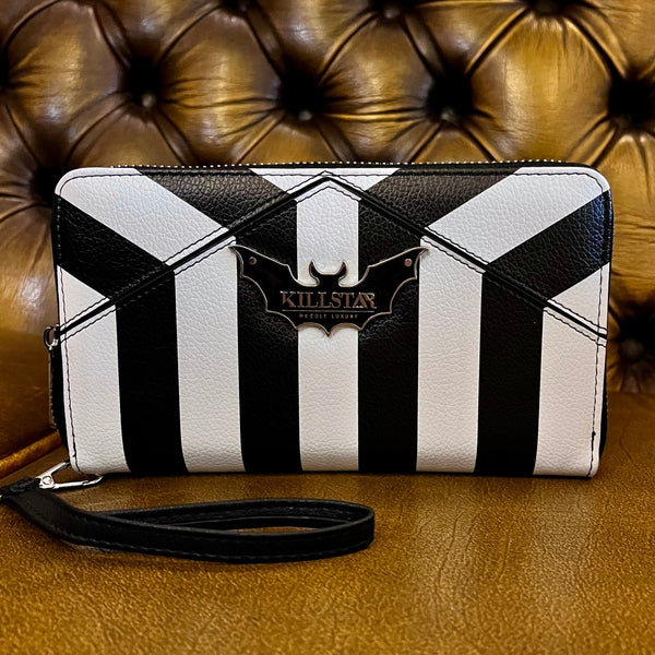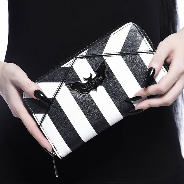 The 'Never Trust The Living' wallet is finished in a faux leather body adorned with a block-stripe print, branded bat plaque and complete with multiple storage compartments + zip closure. Keeps your change,...