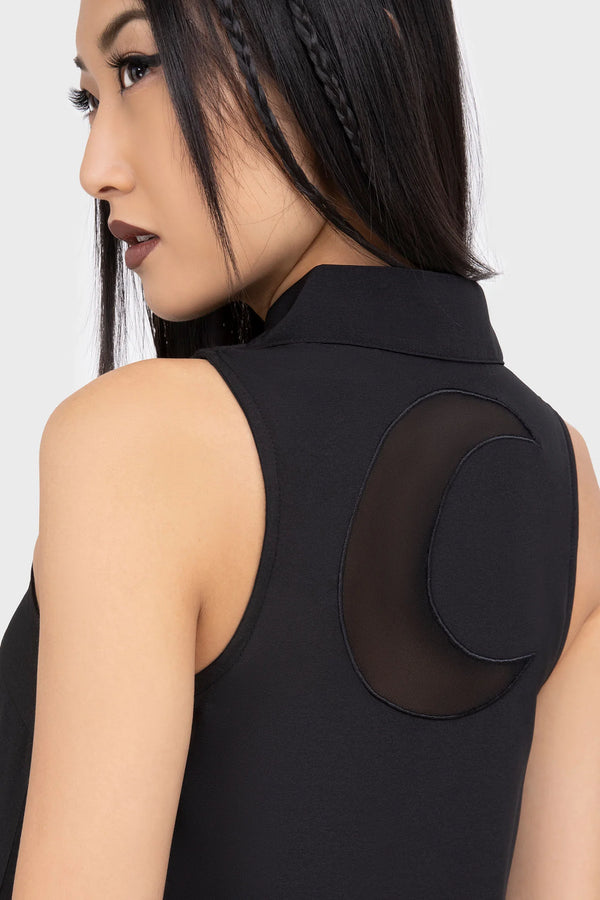 - Soft, stretch fabric.- Hi- low hem.- Mesh moon panel.- Functional front buttons.- Fitted.With KIHILIST branding, 96% Polyester 4% Elastane.Machine wash cold (30°c) / Do not bleach / Do not...