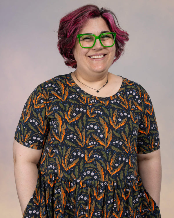 Get ready for a wickedly good time with this Poison and Plants Oversized Smock Dress. Perfect for any spooky occasion, this dress features a playful print of poison bottles and...