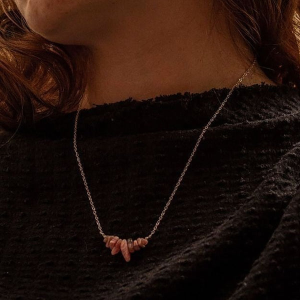 On a 925-sterling silver chain, this necklace features a single Rose Quartz crystal pendant in a natural shape. Delicate in design, it’s the perfect go-to, easy to wear accessory this...