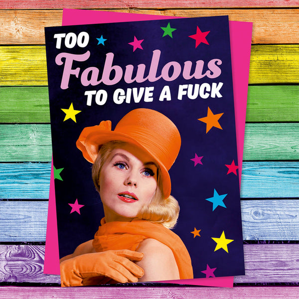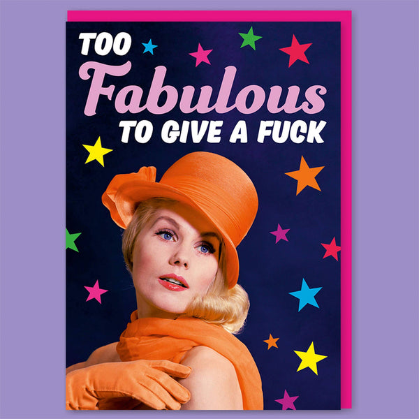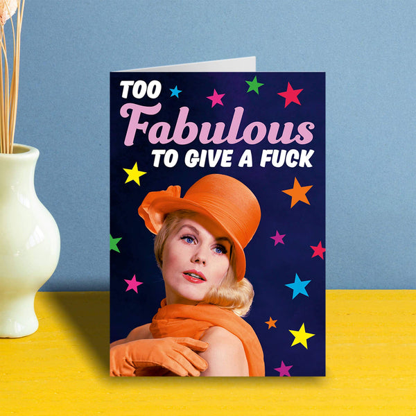 When you're this fabulous you really need to give a f*** about anything, except maybe this card. A greeting card with a glamorous looking woman in a orange dress surrounded...