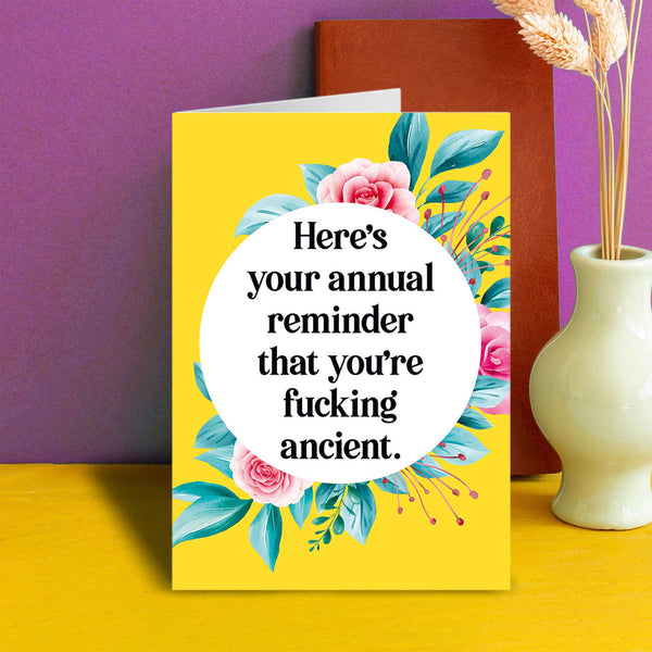 You can still let someone know they're f'ing ancient in a nice flowery way. Here's the birthday card for that occasions. A funny rude birthday card with a flowery patter...